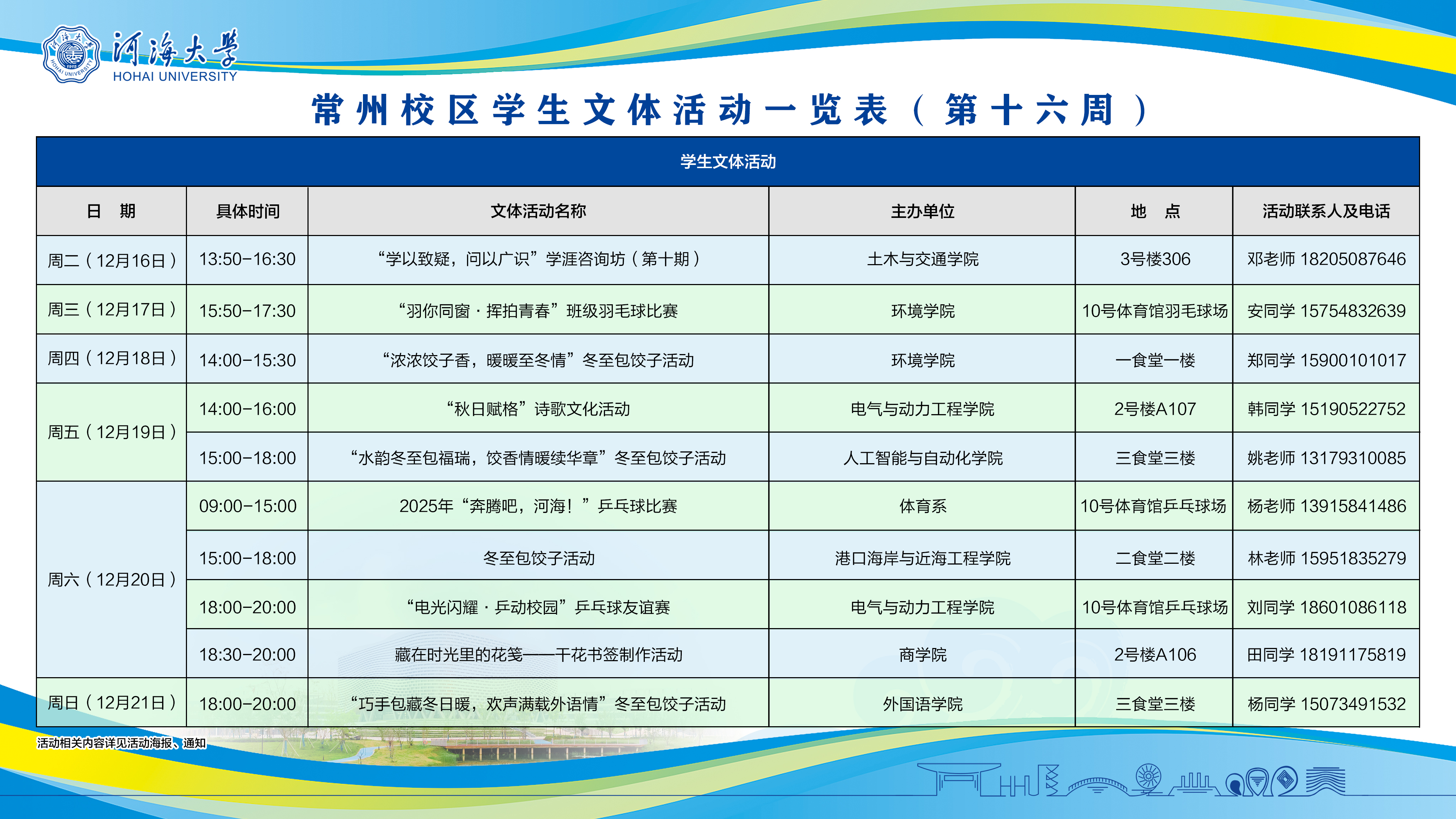 常州校区学生学术活动、文体活动相关安排(第16周)