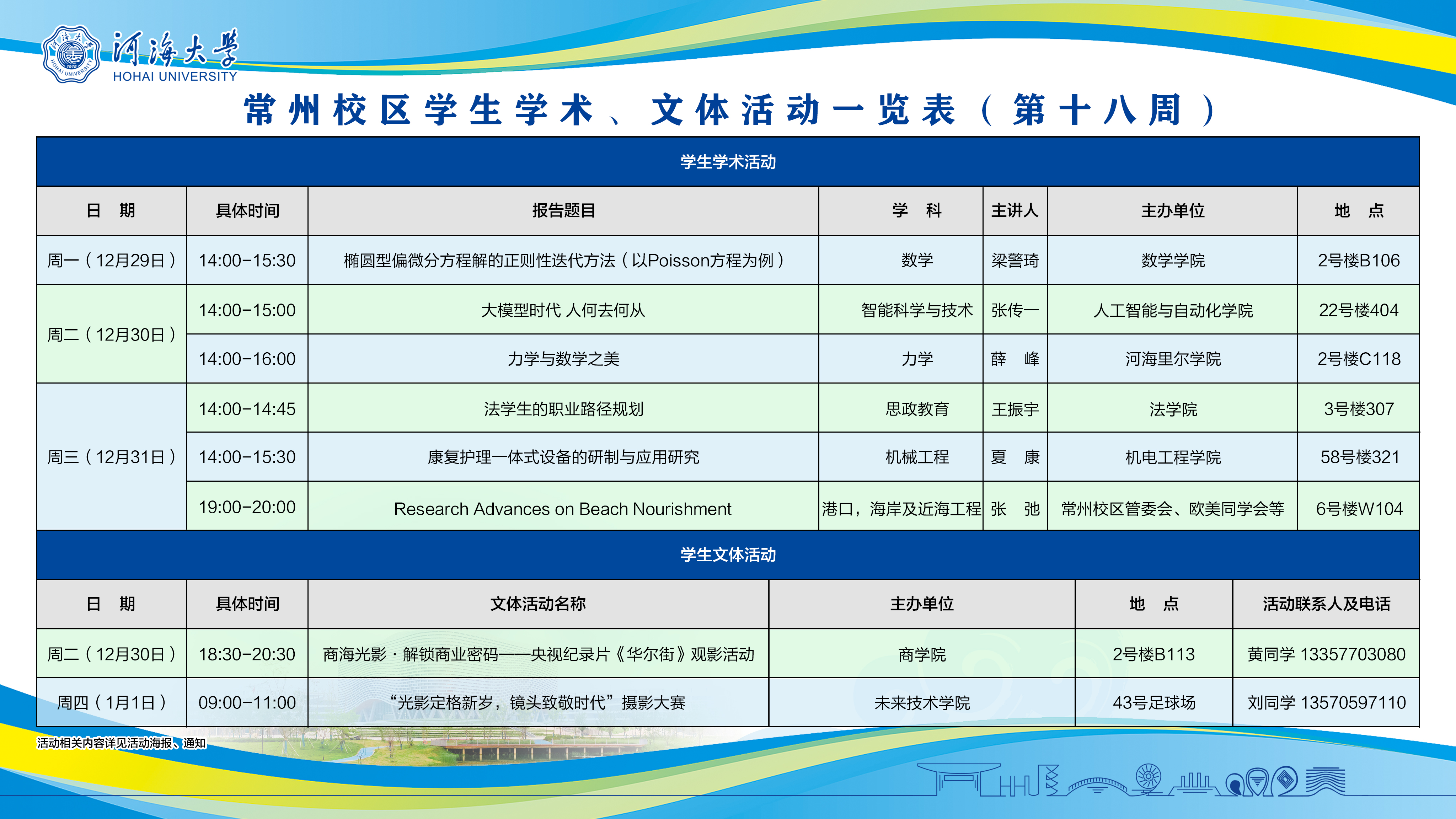 常州校区学生学术活动、文体活动相关安排(第18周)