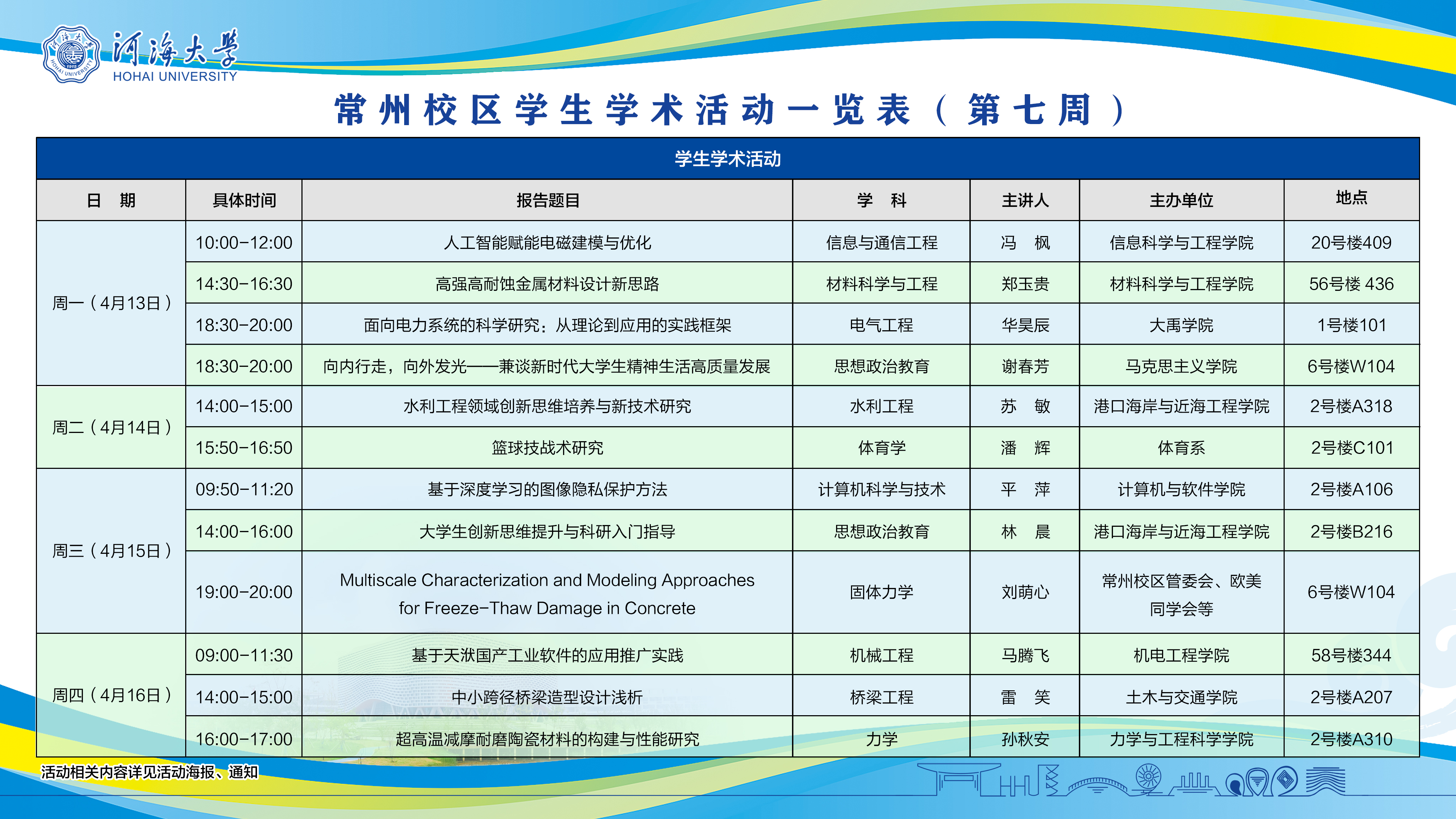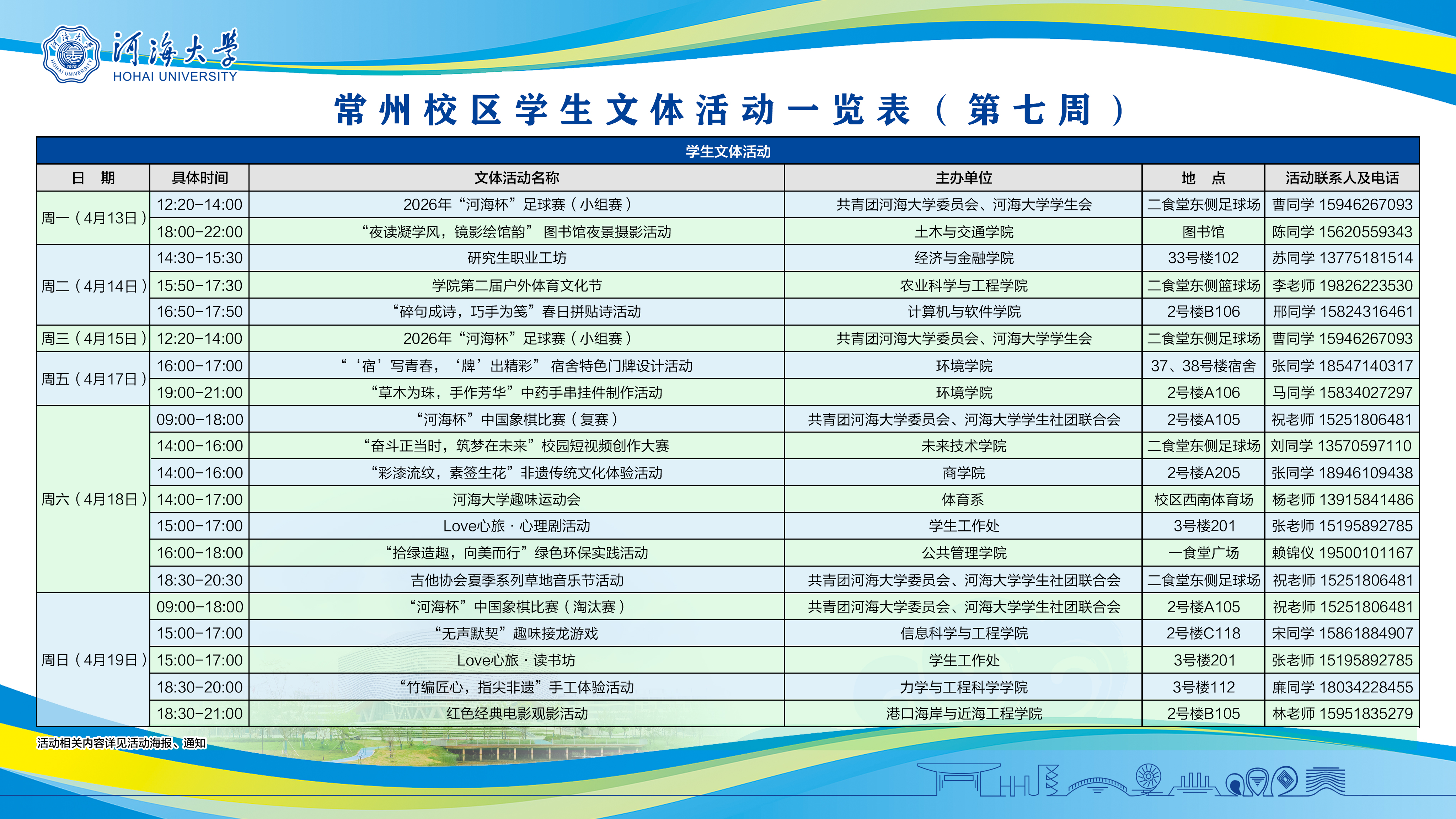 常州校区学生学术活动、文体活动相关安排(第7周)