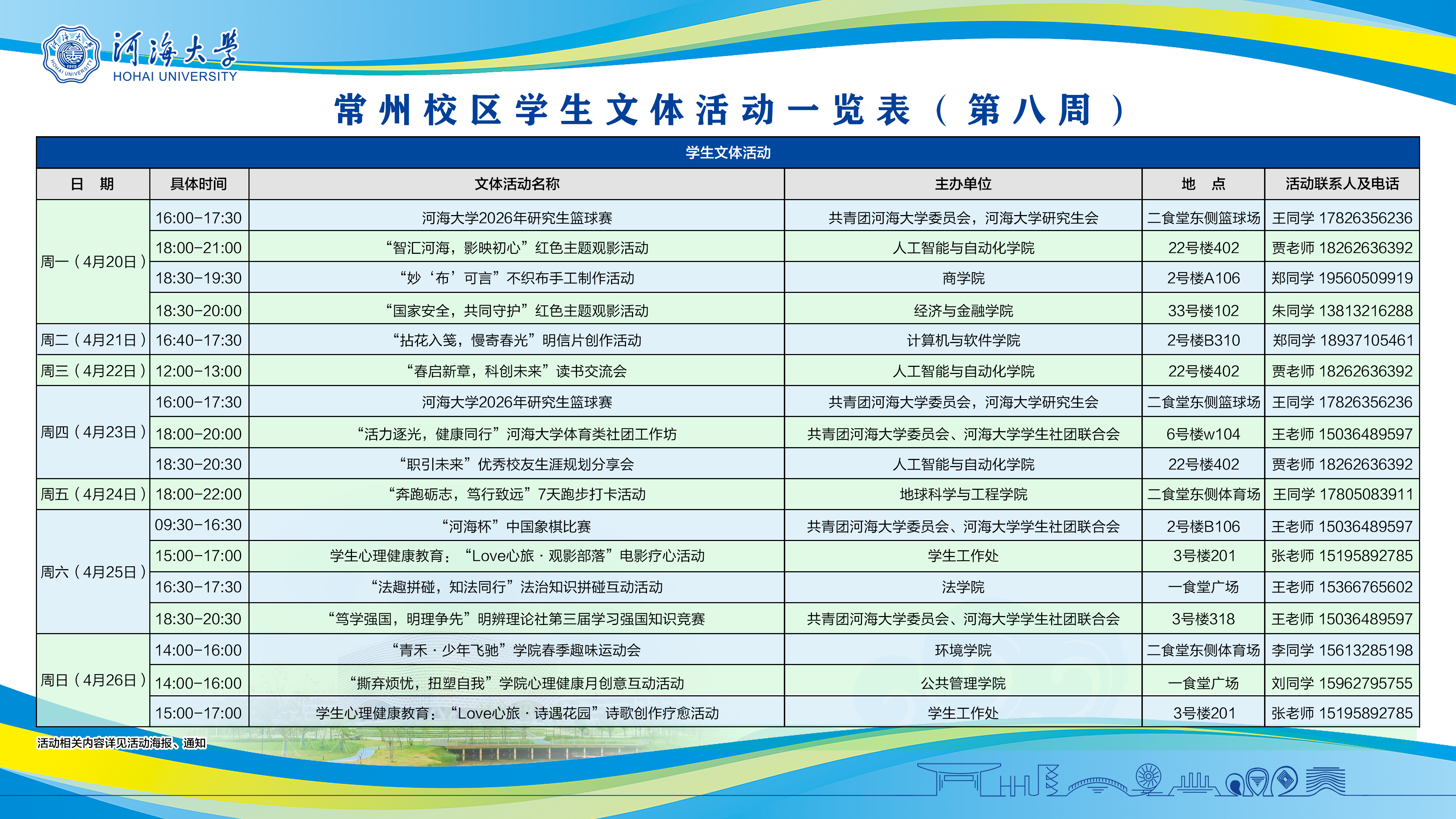 常州校区学生学术活动、文体活动相关安排(第8周)